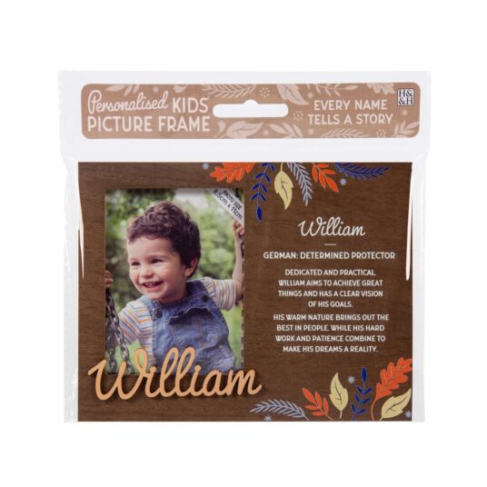 Stylish wooden laminate frame to display your favourite photo. Each frame features the personalised derivation of your child's name alongside a fun personality profile for their name. In a contemporary design style and dark or light coloured wood laminate to suit all home decor, the frame is easy to hang or display and makes the ultimate personalised gift.