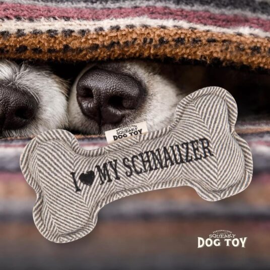 Personalised Squeaky Dog Toy – I love my Schnauzer