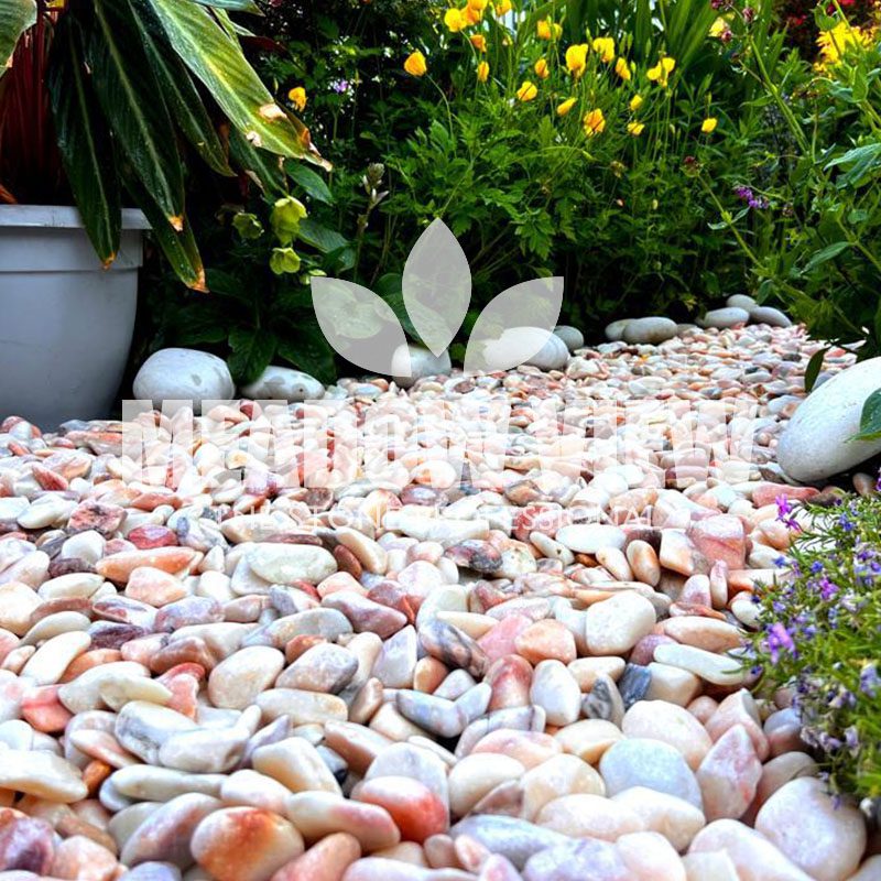 Meadow View Stone Savannah Rose Pebbles offer a beautiful mix of soft pink and cream marble tones, creating a warm and elegant finish in any garden. Their smooth, rounded texture and natural durability make them ideal for borders, planters, and ornamental water features, adding depth and sophistication to outdoor spaces. Crafted from high-quality marble, these decorative pebbles provide lasting beauty and complement both modern and traditional landscapes.