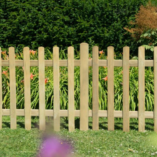 Each panel features vertical pales with a decorative grooved profile, fixed securely to two horizontal backing rails for strength and stability. Made from pressure treated timber, the panels are designed to withstand the elements and come with a 15-year anti-rot guarantee. The natural timber finish looks great as it is or can be painted or stained to suit your garden style. Manufactured by Forest Garden, these panels balance durability with timeless appeal.