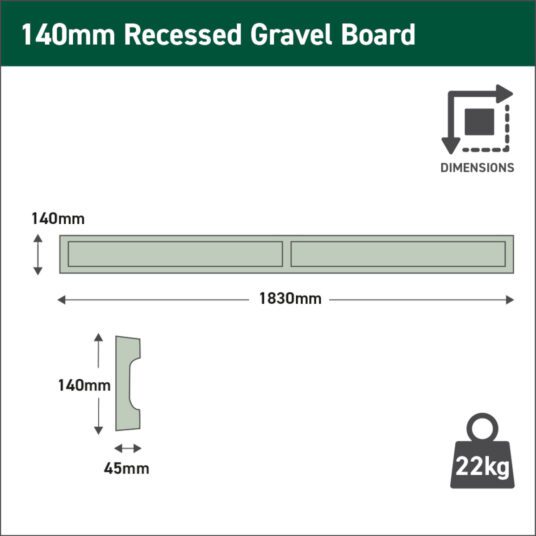 The Forest Garden Professional Recessed Gravel Board offers a durable, low-maintenance way to protect your wooden fence panels from ground moisture and rot. Designed to sit neatly beneath fencing, these gravel boards create a smart, professional finish while extending the life of your fence by keeping timber safely away from damp soil.