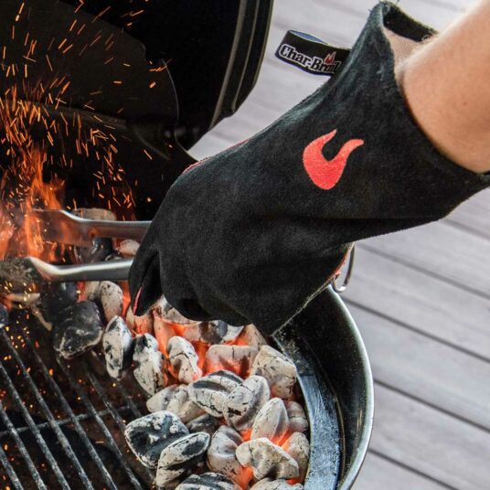Protects hands and wrists, high-quality, stitched leather, 130°C maximum prolonged temperature.
