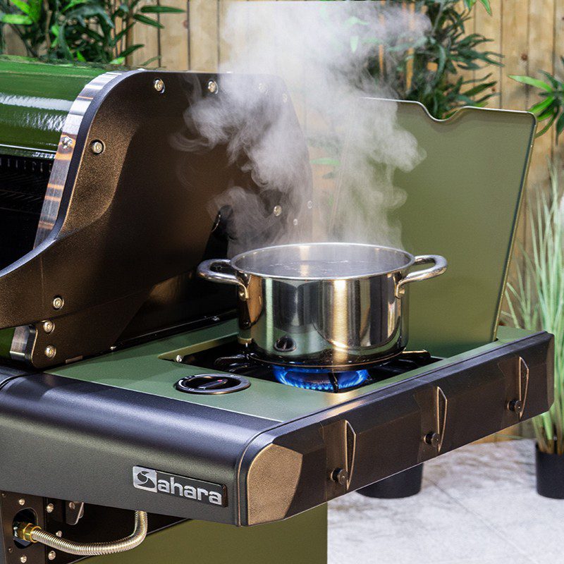 The Sahara X450 4B Gas BBQ is built for anyone who wants power, versatility, and effortless outdoor cooking. Its panoramic viewing window lets you keep an eye on your food without lifting the lid, helping maintain steady heat for perfect results. The cast iron enamel-coated grill delivers superb heat retention and even cooking, while the innovative Sahara Grill Insert System lets you swap in accessories such as a pizza stone, searing grill, or griddle for endless possibilities.