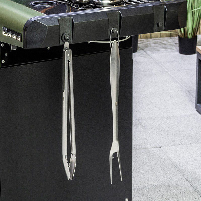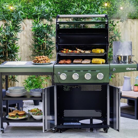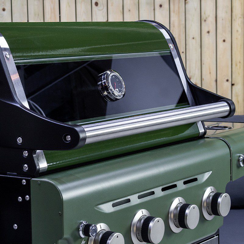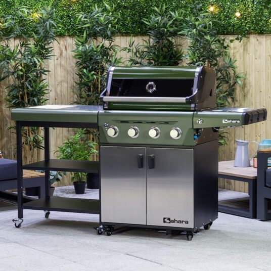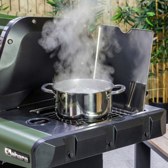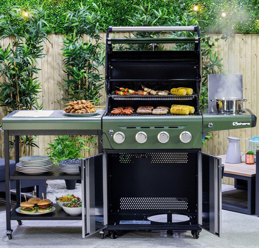 The Sahara X475 4B Gas BBQ with Trolley is built for anyone who wants power, flexibility, and convenience in the garden. Its standout feature is the clever wheel-away side cart, which works as both a prep station and a detachable patio trolley. With a built-in chopping board and utility bin, it gives you proper space for food prep and storage, then wheels away when you’re done. The panoramic viewing window lets you keep an eye on your food without lifting the lid, helping you maintain steady heat for perfectly cooked results.