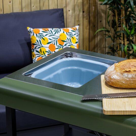 • Wheel away side cart that doubles as a patio trolley and prep station