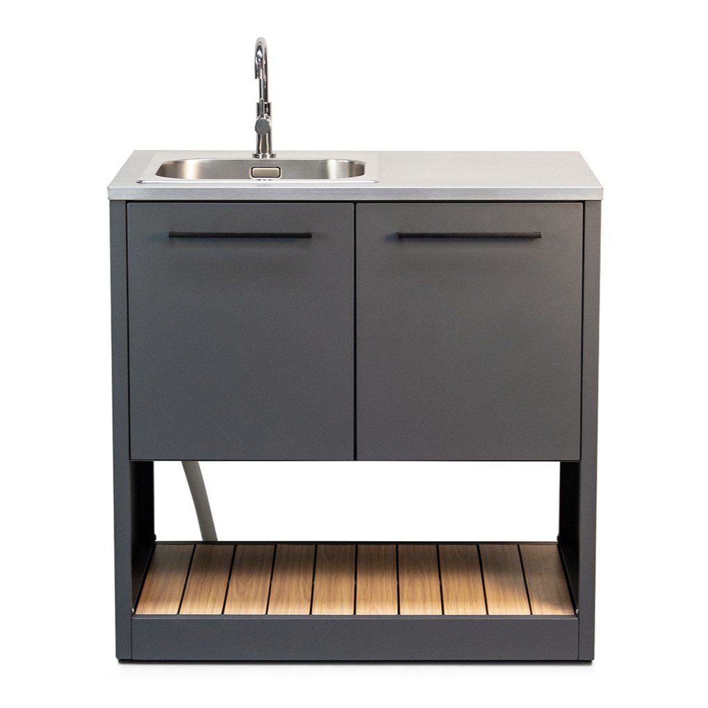 The Sahara Outdoor Kitchen Sink Unit gives you a practical and stylish space for washing up and prepping food outside. Its stainless steel worktop is tough, smooth, and easy to clean, making it ideal for everything from rinsing veg to sorting utensils. The integrated sink, tap, and drain kit make outdoor washing simple, while the quick-connect fitting lets you attach a hose in seconds. Soft-close hinges add a touch of quality, keeping the experience smooth and quiet.