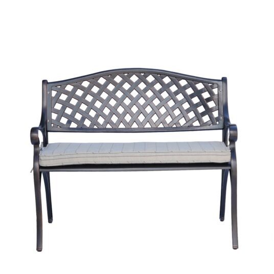 The Baylen Cast Aluminium Garden Bench is a smart and practical seating choice for patios, lawns, and garden corners. Made from durable die cast aluminium, it is rust-resistant, waterproof, and lightweight, making it easy to move while standing up well to the British weather. The classic lattice design with a brushed bronze effect gives it a timeless look that suits both traditional and modern outdoor spaces, offering style without the high price tag.