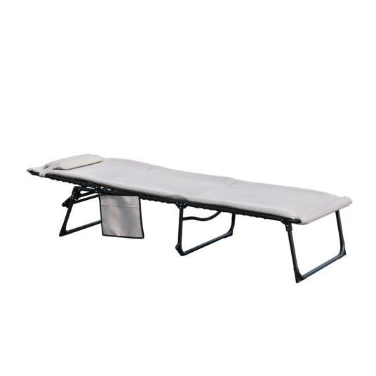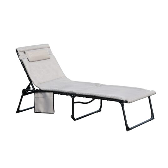 Relax in comfort with the Deluxe Folding Garden Sun Lounger, designed for laid-back days in the garden, on the patio, or by the pool. Featuring a sturdy powder-coated steel frame and breathable grey Oxford fabric, it offers reliable support with a comfortable, fibre-filled headrest for added relaxation. The folding design makes it easy to store or move when not in use, while the adjustable reclining position lets you find the perfect angle to unwind.