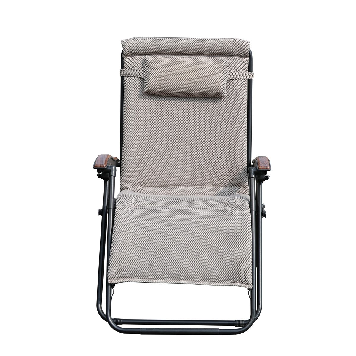Crafted with a lightweight yet reinforced aluminium frame, this lounger is both sturdy and easy to move. The powder-coated finish ensures durability against the elements, while the extra-large teak-effect armrests add a touch of elegance and practicality. When not in use, simply fold it away for compact storage, making it perfect for any patio, garden, or outdoor adventure.