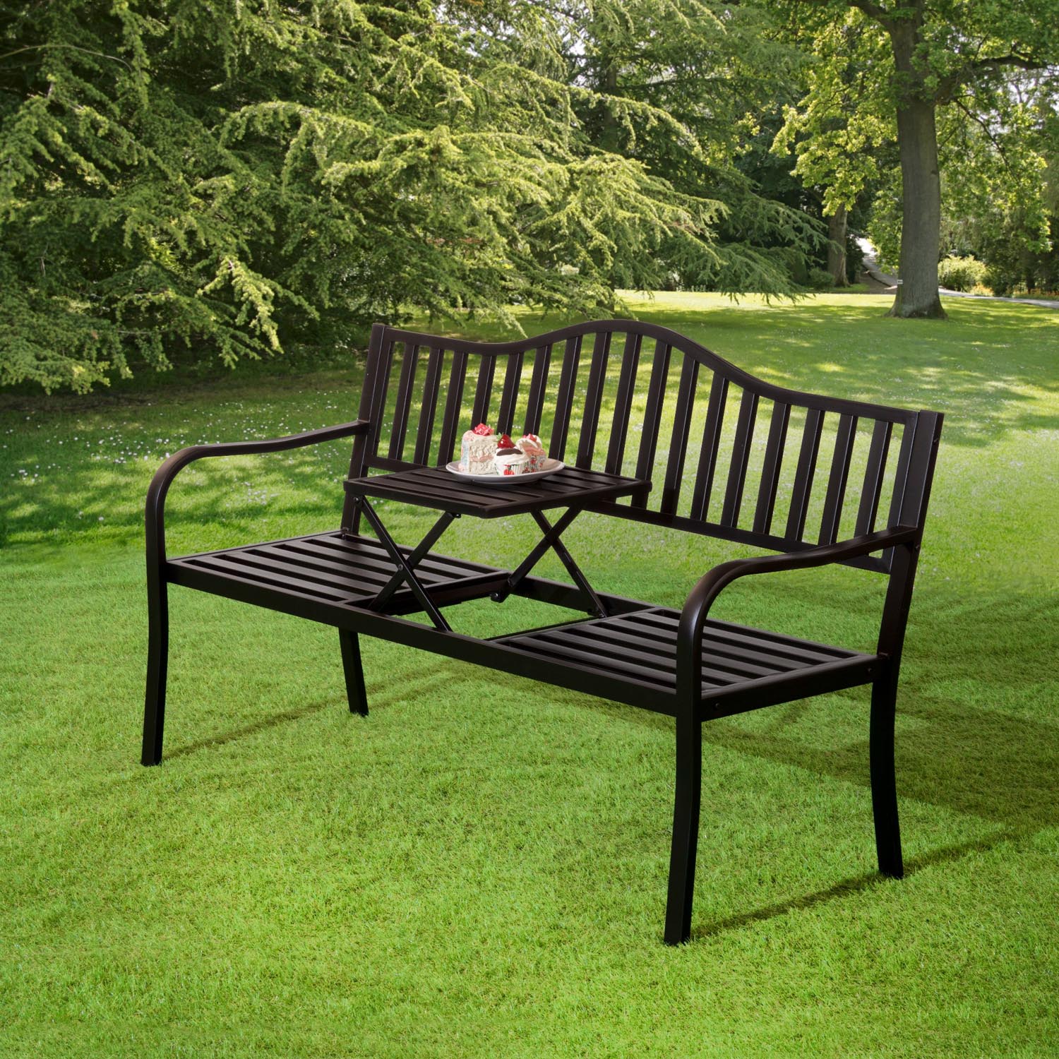 The Russo 3 Seater Garden Bench combines practicality with timeless design, offering a comfortable seating area for up to three people. Crafted with a durable galvanised metal frame, this bench is built to withstand the elements, ensuring long-lasting use. The standout feature is its central pop-up table, ideal for placing refreshments or small items while you relax outdoors.