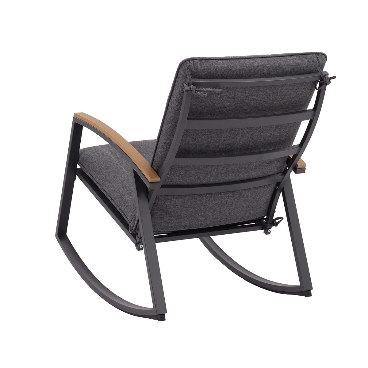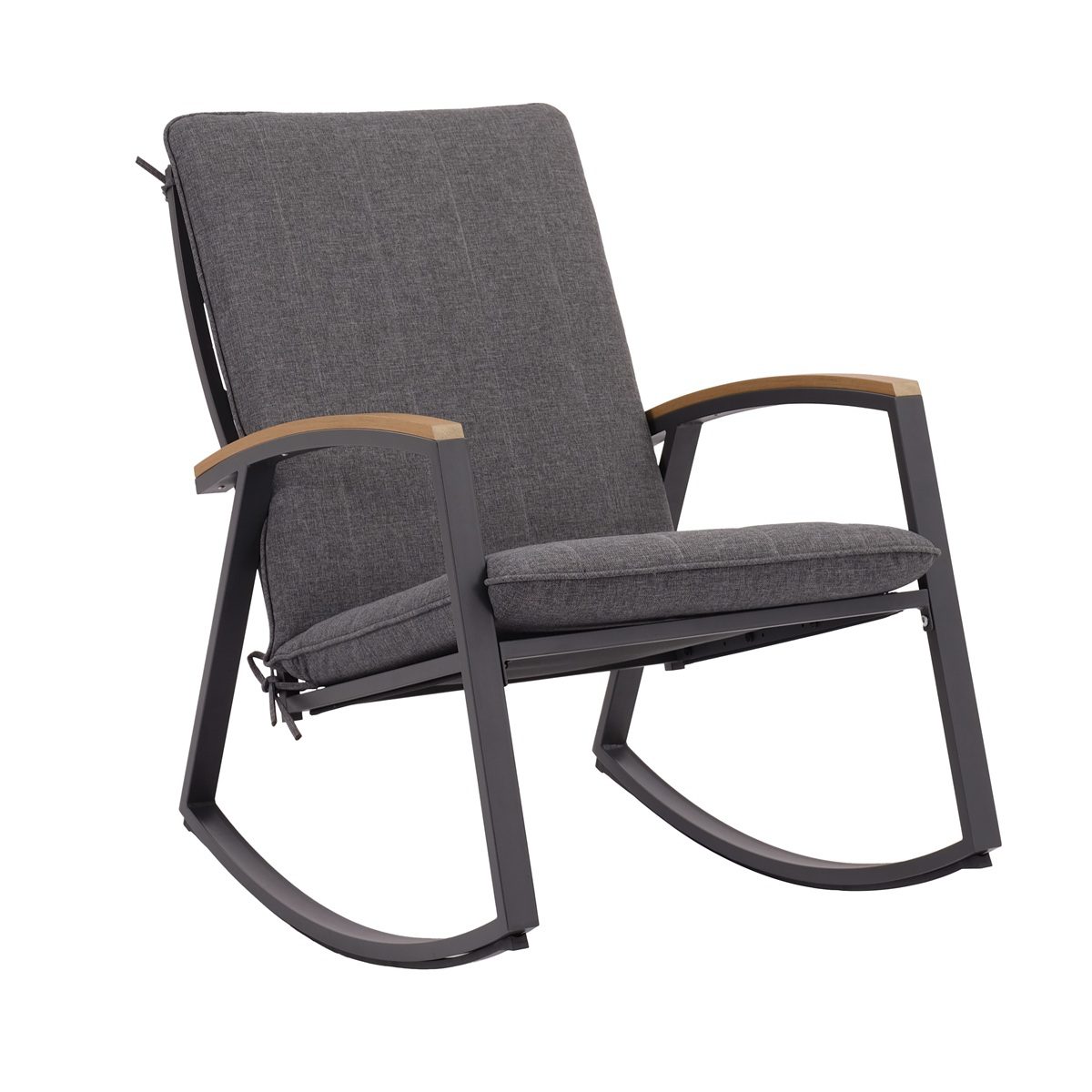 The Lina Rocking Chair Garden Bistro Set is a stylish and relaxing choice for patios, balconies, and smaller garden spaces. Designed for comfort as well as practicality, this modern set includes two gently rocking chairs and a matching coffee table, creating the perfect spot to unwind with a drink or a good book. The contemporary grey finish and wood grain effect tabletop give it a smart, modern look that suits a wide range of outdoor settings.