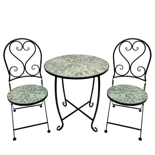 Mosaic Leaf Design Metal Garden Bistro Set