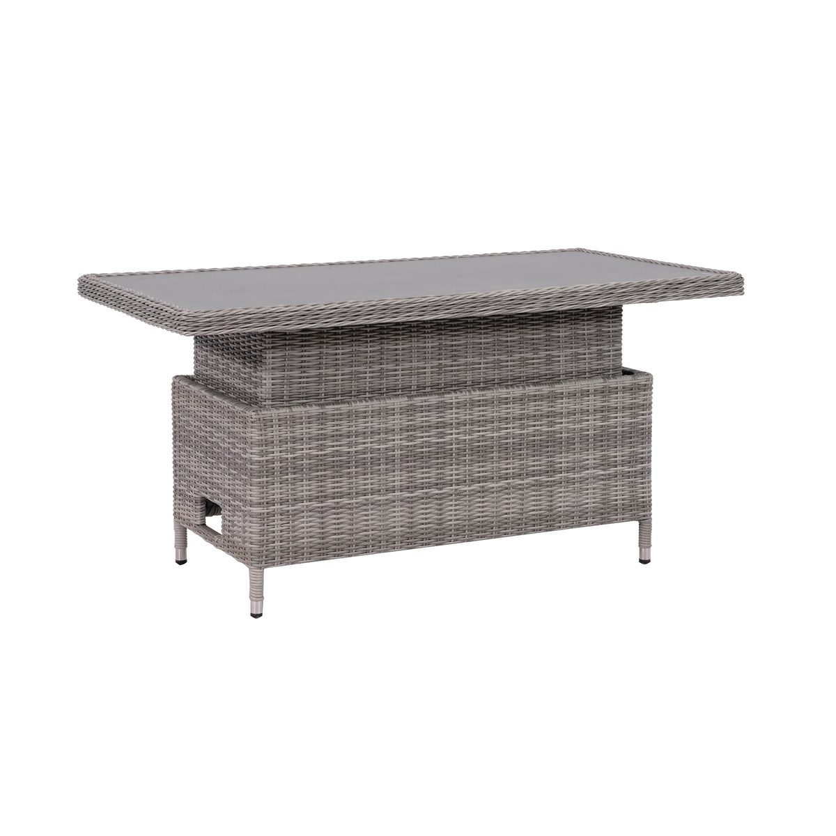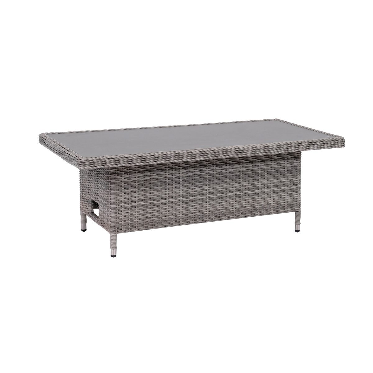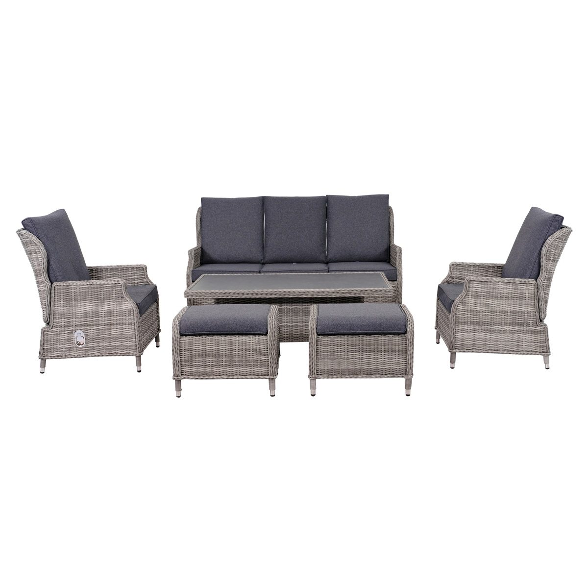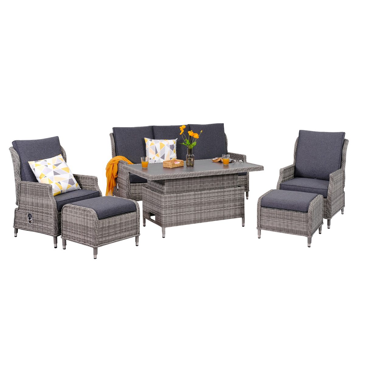 Built on a sturdy aluminium frame, this set is durable, low maintenance, and easy to clean. The reclining sofa and armchairs let you sit back in comfort, while the waterproof cushions meet UK fire safety regulations for added peace of mind. A height adjustable table with a scratch resistant ceramic glass top completes the set, making it easy to switch between casual coffee breaks and relaxed outdoor dining.