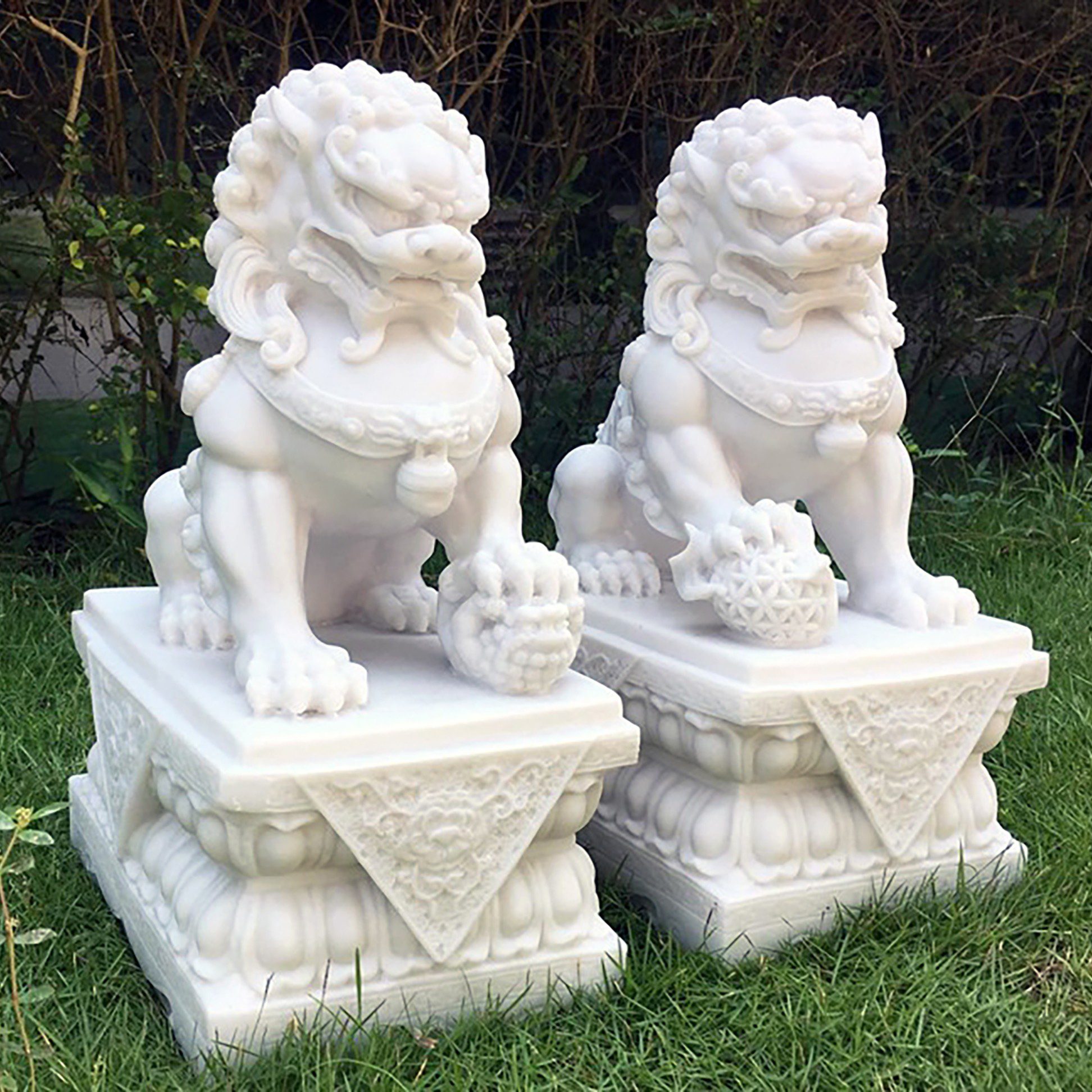 Enigma Marble Effect XL Temple Dog Pair Garden Statue
