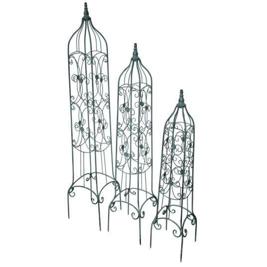 Made from sturdy iron with a durable EDP coating, these obelisks are built to withstand the elements and provide reliable support throughout the growing season. The three different sizes allow you to create a layered display or place them throughout the garden for a coordinated finish.