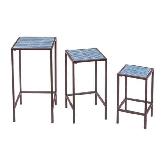 Add a splash of colour and character to your space with the Malda Set of 3 Mosaic Console Side Tables. Featuring striking blue mosaic tile tops and a sturdy dark brown metal frame, these tables bring a decorative yet practical touch to both indoor and outdoor settings. The tiered sizes make them easy to style together or separately, perfect for displaying plants, lamps, or decorative accessories.