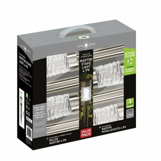 Super Bright Martini Stainless Steel Solar Powered Garden Spike Lights – 4 Pack