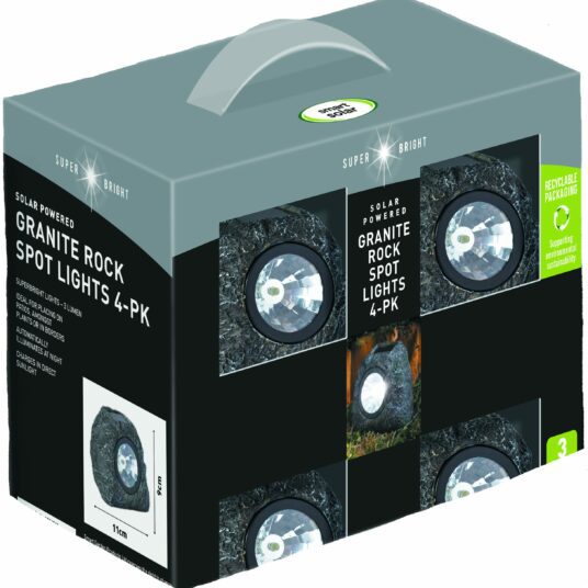 Enhance your garden with our Super Bright Rock Spotlights, designed to provide stylish and practical illumination for outdoor spaces. These solar-powered spotlights blend seamlessly into flower beds, borders, pathways, drives, and even ponds, adding a warm and inviting glow. Each light delivers 3 Lumen Super Bright lighting, offering a reliable and energy-efficient solution for highlighting key features in your garden. With a runtime of up to six hours, they provide long-lasting brightness without the need for wiring or mains power.