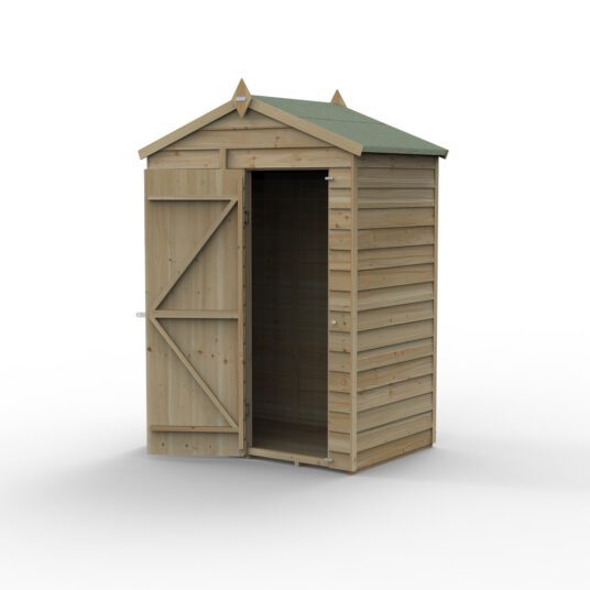 The Forest Garden 4LIFE Apex Garden Shed 5x3ft is a compact and secure storage solution designed for smaller gardens. Built with strength and longevity in mind, this windowless shed is ideal for keeping gardening tools, equipment, and outdoor essentials safely out of sight. The fully modular design means it arrives in smaller, easier-to-handle panels, yet uses more timber for a sturdier build and simpler installation. With thicker framing than most sheds in its class and overlap boards that allow natural movement and rain run-off, this shed is engineered to withstand the British weather all year round.