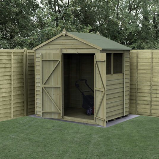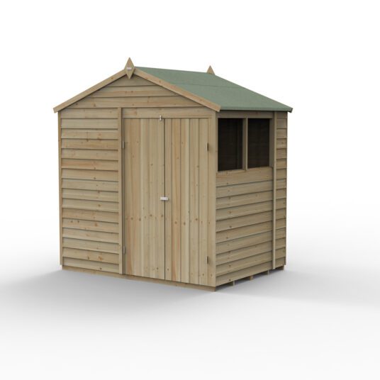 The Forest Garden 4LIFE Apex Garden Shed 7x5ft offers a dependable and long-lasting space for storing garden tools and equipment, especially where room is limited. Its fully modular design means easier assembly, stronger construction and more flexibility when placing windows and doors. With thicker framing than most standard sheds and overlap cladding that allows natural movement of the timber, this shed is built to handle the changing seasons with ease. The pressure treatment provides a 25 year anti rot guarantee, giving you complete freedom from maintenance. No need for preservatives at any stage.