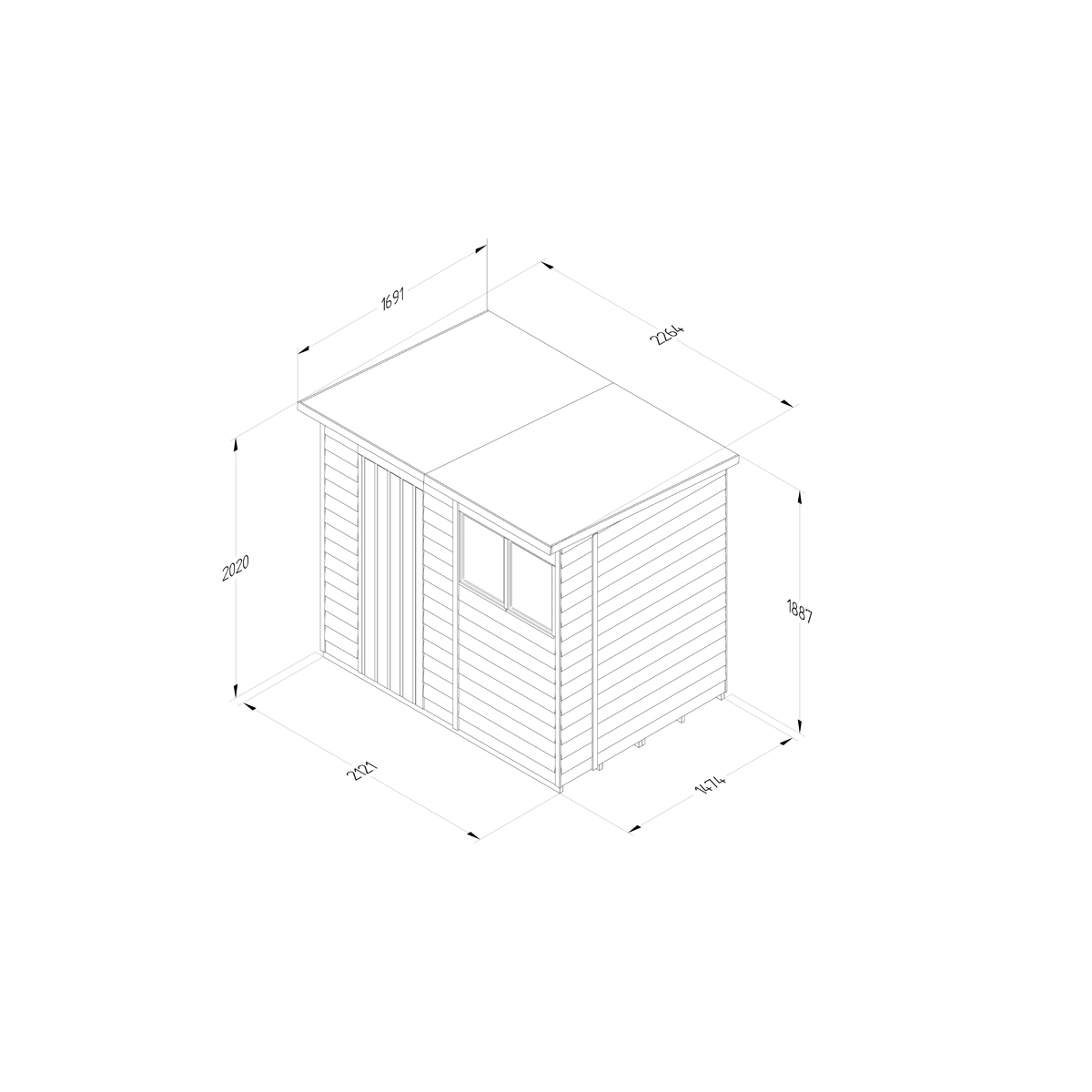 4LIFE Pent Shed 7×5 – Single Door – 2 Windows