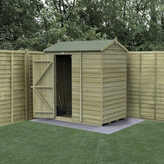The Forest Garden 4LIFE 6x4ft Reverse Apex Garden Shed with Single Door and No Windows delivers compact, secure storage with exceptional durability. Built in Britain using FSC® certified timber, this shed features a reverse apex design that’s ideal for placing against a wall, helping you make the most of your garden space. Its fully modular construction provides stronger, more versatile panels for easier assembly and long-term resilience. Perfect for storing tools, gardening essentials, or valuable equipment, the windowless design enhances security while maintaining a clean, classic appearance.