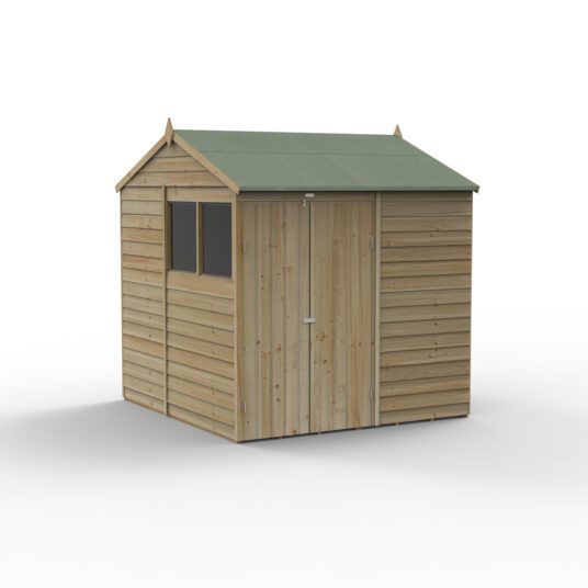 Constructed from pressure-treated, overlap timber boards, the shed allows natural movement through the seasons while providing reliable rainwater run-off. With 30% thicker framing than most standard sheds and a solid timber floor, it easily supports heavier items. The pressure treatment delivers a 25-year anti-rot guarantee, meaning no annual preservative treatments are ever required. A strong double-Z framed door, hidden hinges, and a secure hasp and staple latch add peace of mind, while shatter-proof PET glazing provides clarity and safety without yellowing. Finished with a traditional reverse apex roof topped with green mineral felt, this shed looks smart in any garden. Delivered with Forest Garden’s White Glove Delivery Service, it arrives right where you need it, with all packaging removed for total convenience.