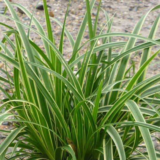 An evergreen, hardy, clump forming grass broad, dark green leaves that have strong creamy-white margins. Suitable for any low maintenance garden, borders, pots and containers.