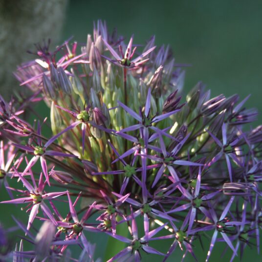 Ornamental onions are grown for their globe shaped flower heads that give a long period of interest as they remain looking attractive dried. Striking violet star-shaped flowers are produced in early summer, the leaves are linear and mid-green and will die back before the flowers appear. They look great planted en masse with grasses and other Alliums. Great for attracting bees and butterflies.