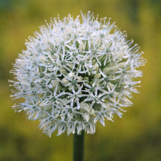 Ornamental onions are grown for their globe-shaped flower heads that give a long period of interest as they remain looking attractive when dried. Beautiful white star-shaped flowers are produced in early summer, the leaves are linear and mid-green and will die back before the flowers appear. They look great planted en masse with grasses and other Alliums. Great for attracting bees and butterflies.