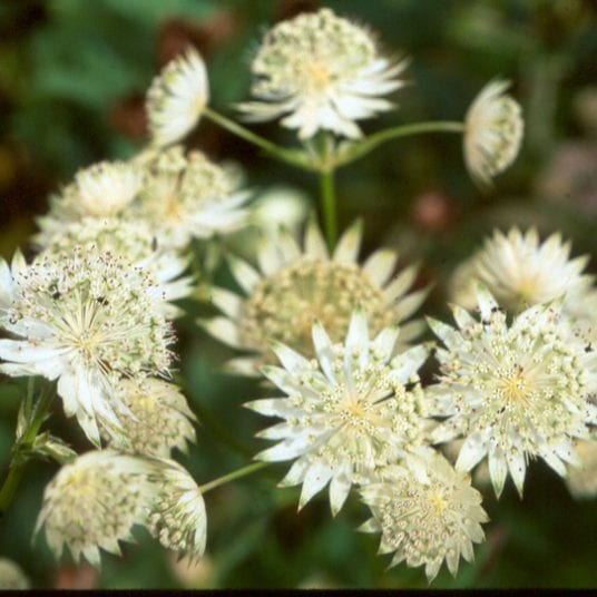 An upright, clump-forming, perennial with deeply divided dark green leaves. In summer branching stems bear umbels of small white flowers surrounded by bracts are produced. Use in a mixed or herbaceous border, looks good planted with grasses and is loved by bees.