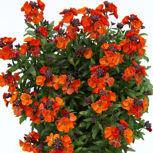 A compact evergreen perennial with linear to lance-shaped, dark green leaves. From late winter into early summer, dense racemes of large, vivid orange flowers with a dark veination are produced. Works well in a mixed border, pots and containers.