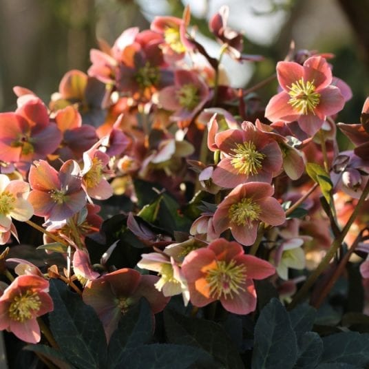 A hardy, evergreen perennial with dark blue-green leaves From early to late spring, outward-facing, saucer-shaped, pale pink flowers maturing from pink to maroon. Great for darker borders, winter, spring and woodland gardens or in containers.