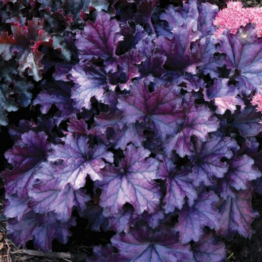 Heuchera Forever Purple is a stunning perennial that adds a burst of rich colour to your garden or outdoor space all year round. Its deep velvety purple foliage creates a bold contrast with other plants, making it an excellent choice for borders and containers. This low maintenance plant thrives in partial shade and well drained soil. In summer delicate spikes of small bell shaped flowers emerge attracting pollinators. To maintain its vibrancy, simply remove any spent flowers and trim back damaged leaves. With its enduring purple hue and ease of care Heuchera Forever Purple is a must have for gardeners looking to elevate their landscape design.
