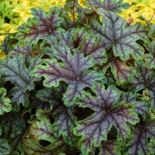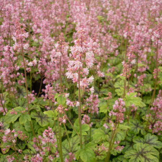 Heucherella Tapestry is a remarkable perennial that combines the best of Heuchera and Tiarella creating a stunning tapestry of colours and textures in your garden. Its intricately lobed leaves boast shades of green, silver and burgundy forming a striking backdrop. In late spring delicate white flowers on tall spikes rise above the foliage attracting pollinators. This plant thrives in partial to full shade and prefers well draining, moist soil. Ensure consistent watering especially during dry spells. Prune spent flower stalks to encourage new growth and maintain its vibrant appearance. Heucherella Tapestry adds a unique colourful dimension to shade gardens, containers and woodland landscapes.