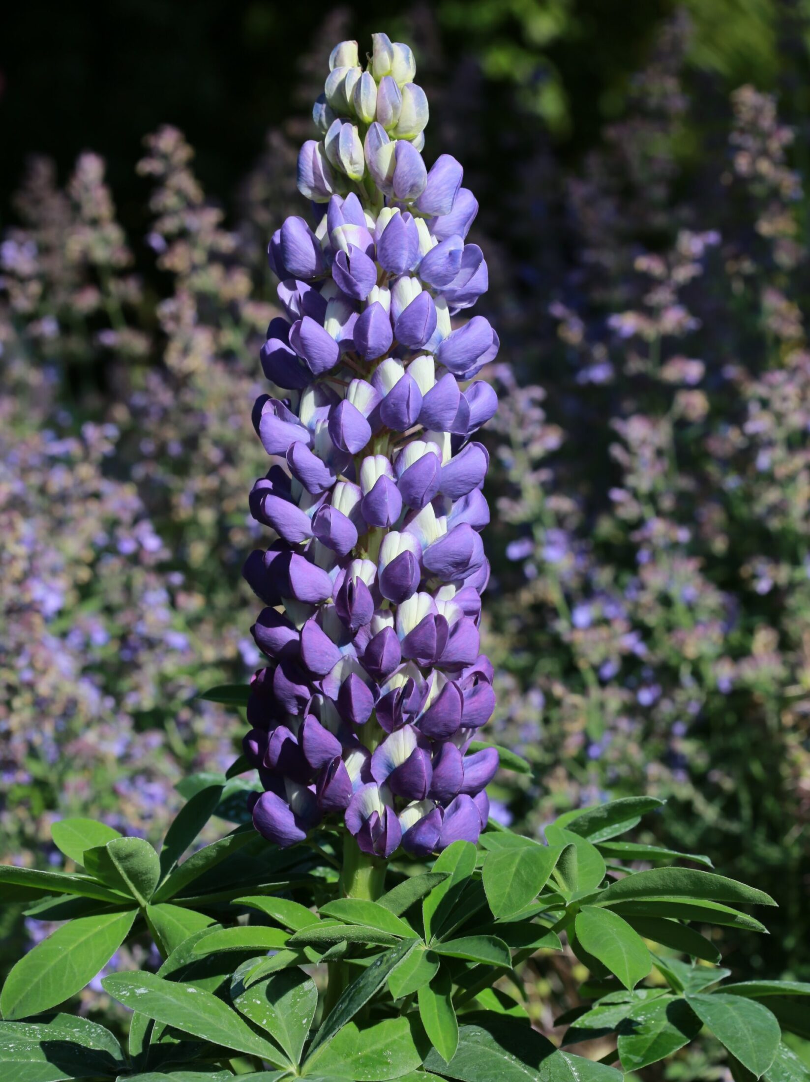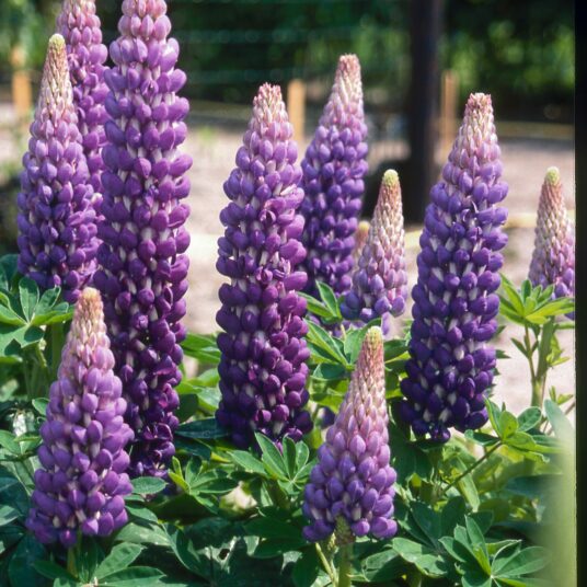 A hardy perennial with palmate, mid-green leaves. Tall, upright, terminal racemes of deep-blue white flecked flowers are produced from late spring to early summer. Ideal for giving height and colour to the herbaceous or mixed border.