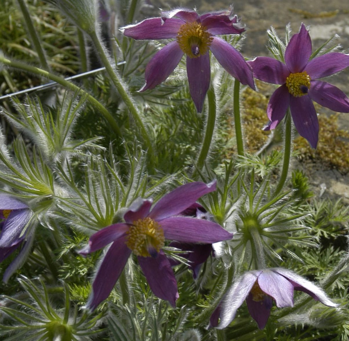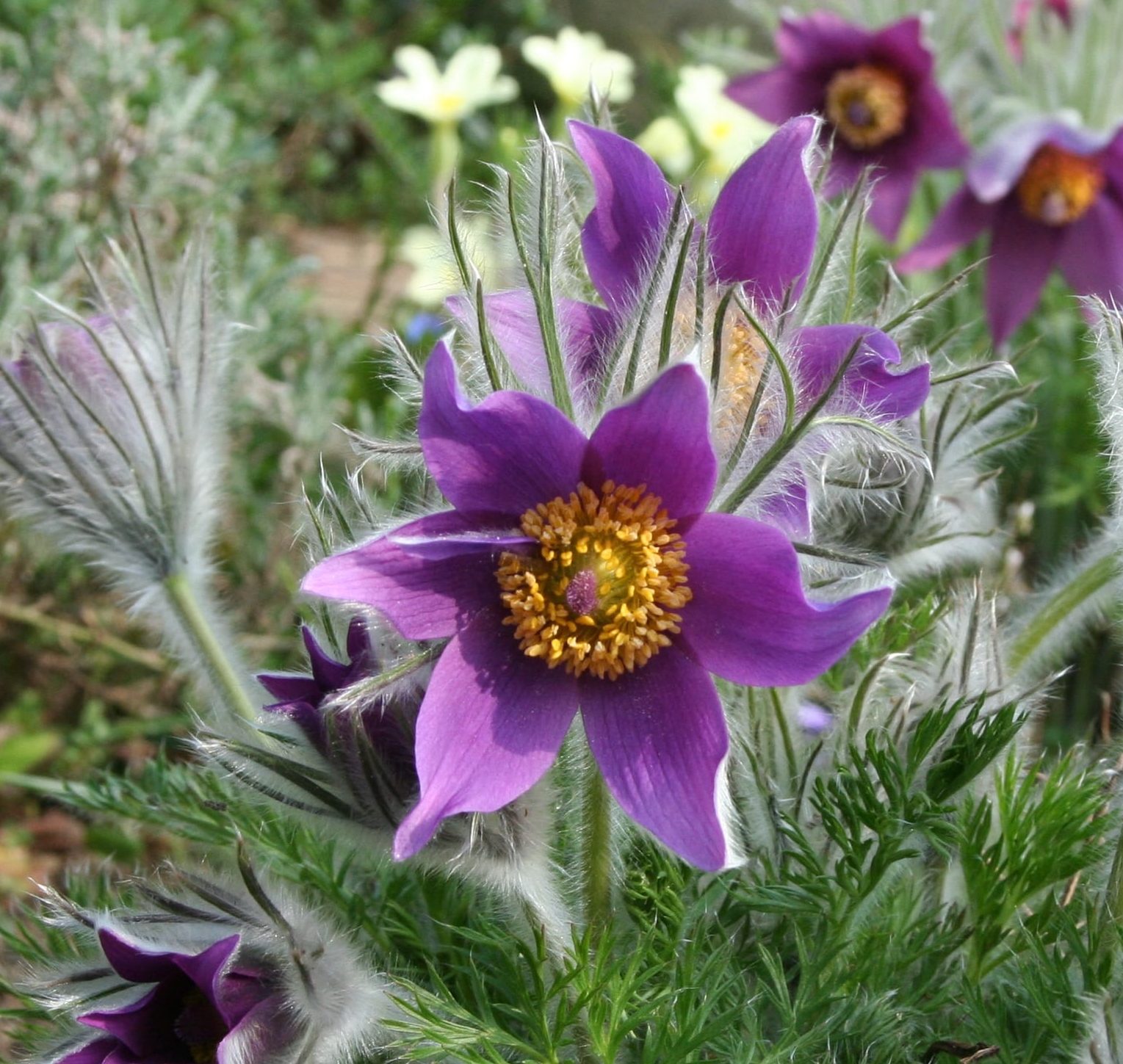 A hardy, clump-forming perennial with grey-green, finely dissected leaves, hairy when young. In spring, upright to nodding, bell-shaped, violet to purple flowers appear, followed by silky seed heads. Great in coastal gardens and gravel or rock gardens.