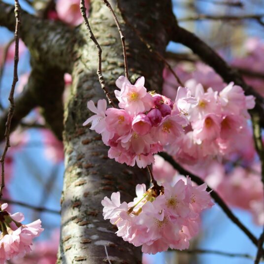 Prunus 'Accolade' – a delightful fusion of two distinguished Prunus varieties, discovered back in the 1950s by the esteemed Waterers Nursery of Surrey. This hybrid brings together the finest attributes of its parentage, blending the early pink blossoms of Prunus subhirtella with the vibrant autumnal leaf hues of Prunus sargentii.