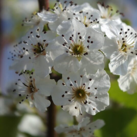 Come springtime, this tree bursts into a spectacular display of white blossoms, creating a captivating floral scene that's hard to miss. As it unfurls its glossy emerald green leaves, 'Chanticleer' stands out for its resistance to diseases, ensuring longevity and vibrancy in your garden. And as autumn rolls around, prepare to be dazzled as the foliage transforms into a vibrant medley of reds, yellows, and burgundies, earning 'Chanticleer' its reputation as one of the premier ornamental pear varieties for its stunning autumnal show.