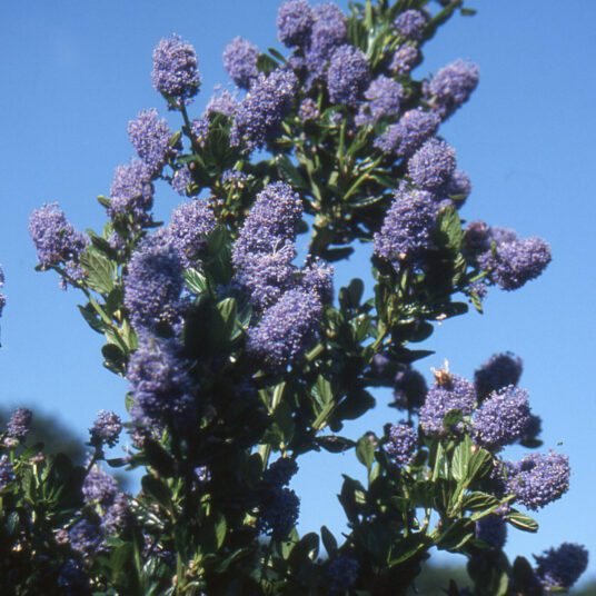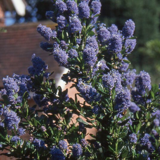 A compact evergreen shrub with finely toothed dark green glossy leaves. Many clusters of deep blue flowers are produced in early summer. Banks and dry slopes, in mixed beds and borders or by a sunny wall.