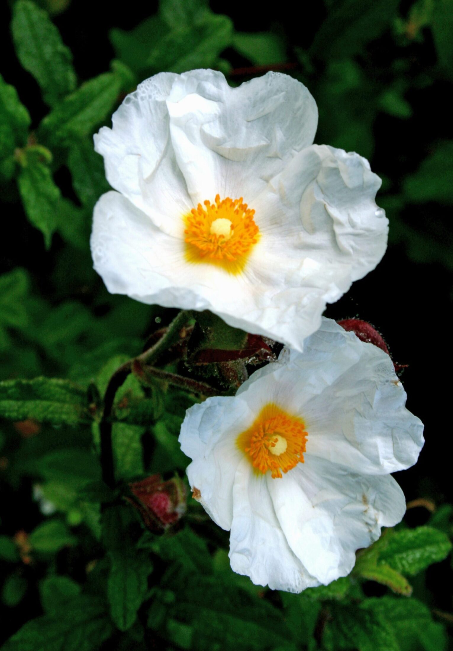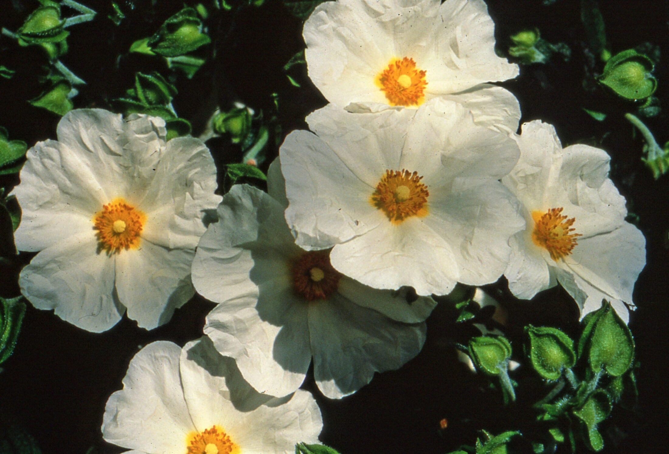 A compact, hardy, evergreen shrub with narrowly lance-shaped, dark green leaves, flushed bronze in winter. In summer, white flowers with yellow centres are produced. Drought tolerant once established, works well in a border or a patio pot.