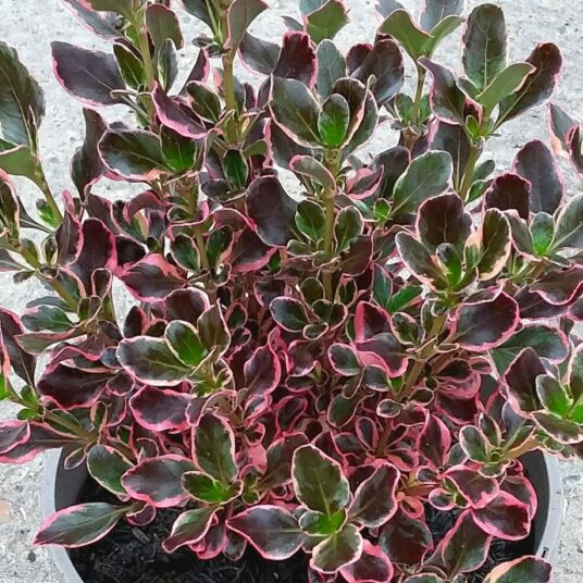 Coprosma 'Fire Burst' is a fiery and compact evergreen shrub that's sure to set your garden ablaze with colour. Its striking variegated leaves showcase vibrant shades of orange, red and yellow all year round, making it a true standout in any landscape. This low maintenance beauty thrives in well draining soil and prefers a sunny to partially shaded spot. Regular watering and mulching help maintain soil moisture, especially in hot climates. 'Fire Burst' requires minimal pruning to maintain its shape and vibrancy. Plant this dazzling shrub to infuse your outdoor space with a burst of colour and visual excitement that will endure throughout the seasons.