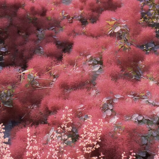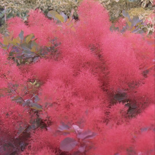 A compact, upright, bushy, deciduous shrub, with reddish-purple leaves. Feathery panicles of reddish-pink flowers bloom in summer. Makes a fantastic specimen shrub or use in a mixed border.