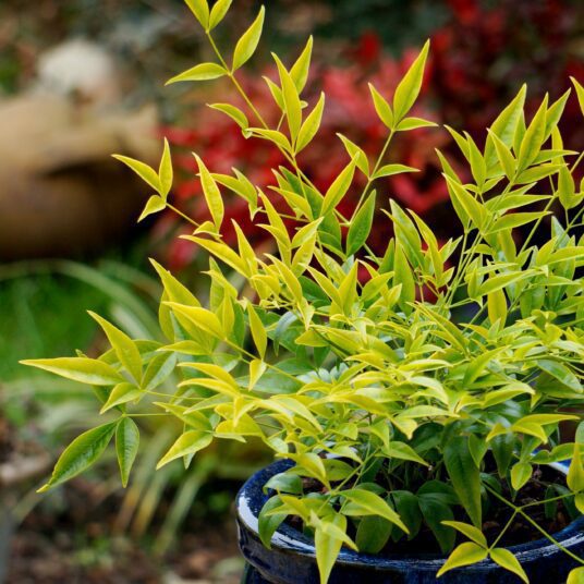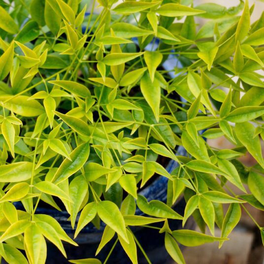 The Nandina domestica 'Brightlight' will enhance any garden or landscape. This striking hardy evergreen shrub features vibrant, lime-green pinnate leaves divided into narrowly lance shaped the yellow-green leaflets will add a burst of colour to any outdoor space. 'Brightlight' thrives in sun to partial shade making it a versatile addition to your garden and will produce small white flowers in the Summer. You can effortlessly introduce colour and texture that brings an all year round standout focal point.