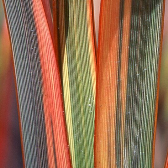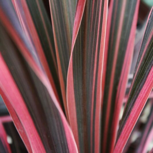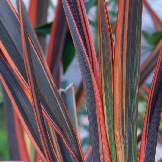 This is the Phormium 'Maori Queen', an exceptional New Zealand Flax. This hardy evergreen ornamental grass showcases striking sword-like foliage in a captivating blend of green, bronze and pink tones. 'Maori Queen' adds a touch of vibrant colour and texture to any outdoor space. Flourishing in well drained soil and sun it effortlessly introduces charm, elevating your garden with its regal beauty and allure. Would look good growing through gravel particularly in containers.