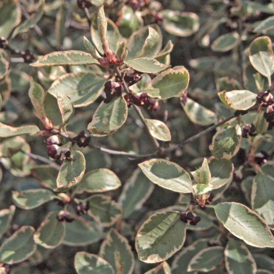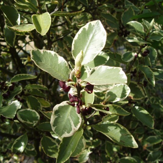 Pittosporum eugenioides 'Garnettii' also known as Variegated Lemonwood is a visually captivating evergreen shrub. Its striking variegated leaves feature shades of green and cream creating a dramatic contrast in your garden. 'Garnettii' thrives in well drained soil and prefers a sunny to partially shaded location. Maintenance is minimal, just simply trim it in late winter or early spring to maintain its shape and height. This hardy shrub is generally resistant to pests and diseases. Keep the soil consistently moist, especially during dry spells. With its unique foliage, 'Garnettii' adds a touch of elegance and interest to your outdoor space.