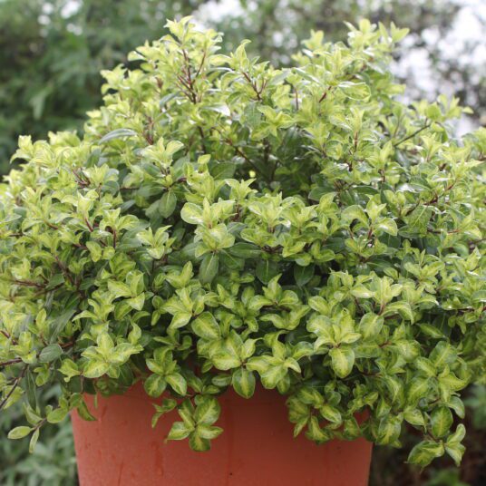 Pittosporum tenuifolium 'Gold Ball' is a golden treasure in your garden. This evergreen shrub boasts vibrant, glossy, gold-edged leaves that provide all year round visual interest. 'Gold Ball' is an easy to care for plant, thriving in well draining soil and partial to full sun. It requires minimal maintenance, with occasional pruning to maintain its shape and height. This variety of pittosporum is generally pest and disease resistant, making it an excellent choice for hassle free landscaping. Ensure the soil stays moderately moist, especially during dry periods. With its radiant foliage, 'Gold Ball' adds a touch of luxury and elegance to your outdoor space, making it a standout feature in your garden.