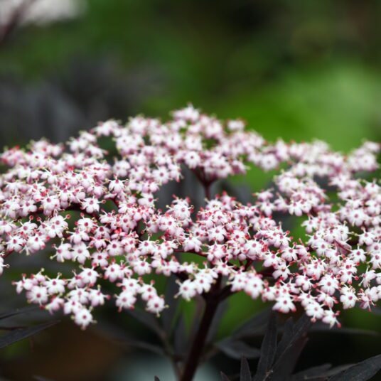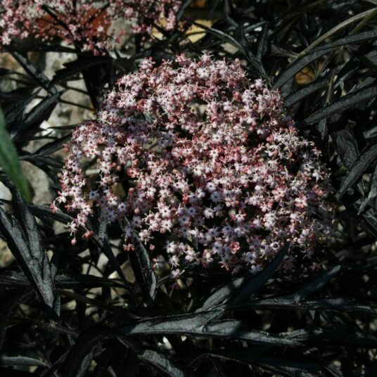 The dramatic beauty of Sambucus nigra 'Black Lace,' a stunning deciduous shrub will add a touch of drama to your garden. This exceptional variety showcases finely cut, dark purple-black foliage that creates a striking and elegant backdrop for your landscape. In late spring to early summer, 'Black Lace' produces delicate clusters of pink flowers that contrast beautifully against its dark leaves. It thrives in well drained soil and prefers full sun to partial shade, making it adaptable to various outdoor settings. Low maintenance and hardy it requires minimal pruning, primarily for shaping or rejuvenation in late winter. Plant 'Black Lace' to add a touch of drama and enjoy its enduring beauty that enriches your garden throughout the seasons. Perfect for a mixed borders adding a contrasting colour.