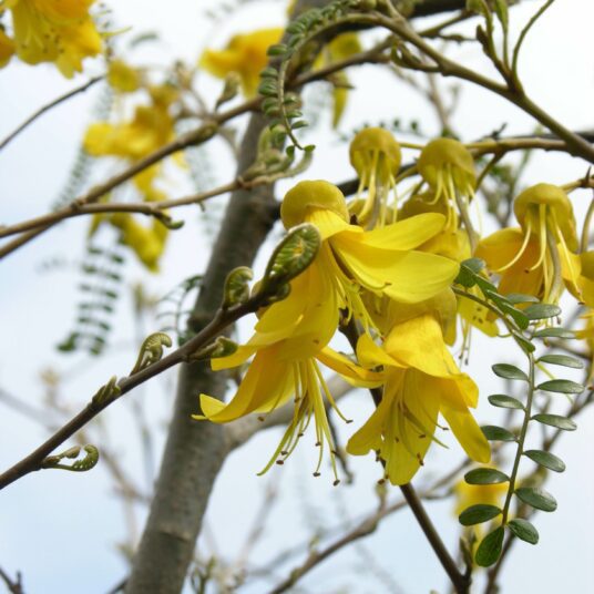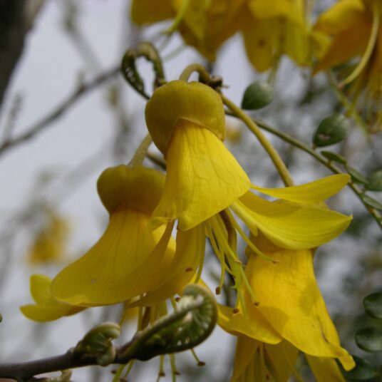 A hardy, evergreen shrub with pinnate leaves composed of up to 40 pairs of small oblong leaflets. Large bright yellow claw-like flowers in short racemes are produced in late winter and early spring. Suitable for use in mixed borders, as a wall shrub or as a specimen.