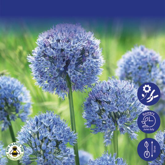 Elevate your garden with these captivating blue Allium caeruleum flowers. Easy-care, drought-tolerant perennials and attractive to pollinators.
